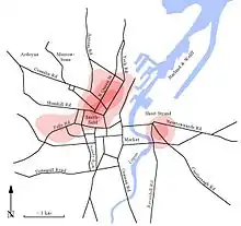 Jacques Brun et Catherine Rhein (1994)[51] étudient la ségrégation spatiale à l'échelle de la ville : les quartiers populaires seraient ainsi perçus comme des lieux de relégation spatiale, sociale, économique et politique. Ainsi Erving Goffman[52], sociologue, définit la ségrégation comme une « captivité dans un territoire » et insiste donc sur l'importance du rôle de l'accessibilité urbaine, des réseaux et des services urbains.