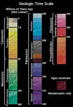 Entre 170 Ma et 40 Ma, trois orogénies majeures se succèdent dans l'actuel ouest américain : le dernier de ces épisodes est l'orogénie laramienne, responsable de la formation des Montagnes Rocheuses[1].
