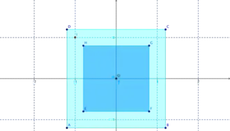 Le carré bleu clair est d'aire supérieure à 4 et contient par exemple le point rouge I de coordonnées (–1, 1).