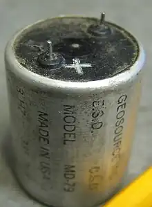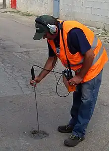 Remarque : on nomme aussi parfois géophones des appareils plutôt apparentés à des microphones ou à un stéthoscope, utilisés pour l'écoute directe de bruits émis par exemple par des fuites de canalisations [3],[4],[5] ou par des personnes enfouies lors d'un séisme.