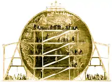 Pour l'Exposition universelle de Paris de 1889, Théodore Villard et Charles Cotard construisirent sur l'Avenue de Suffren, à la limite du Champ-de-Mars le géorama monumental, animé d'un mouvement de rotation, intitulé « globe terrestre au millionième », d'un diamètre de 12,73 m[16],[17]. Une des tourelles d'accès était munie d'un ascenseur Otis[18].