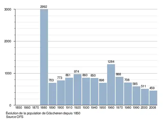 Le graphique suivant résume l'évolution de la population de Göschenen entre 1850 et 2008[3] :