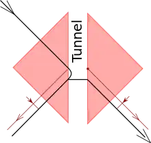 Günter Nimtz et ses coauteurs ont étudié ce sujet depuis 1992. Des documents et les articles depuis lors nombreux sont édités dans des Conférences Internationales et dans la presse scientifique[2]. Leur installation expérimentale implique des micro-ondes envoyées à travers deux espaces séparés par des prismes.