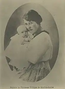 Gaëtan de Bourbon-Siciles dans les bras de sa mère Marie-Louise d'Orléans vers 1917.