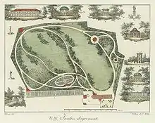 « Vue du Jardin : Parcs ou Carrières », tiré d'une réédition (de 1838) de Plans raisonnés de toutes les espèces de jardins.