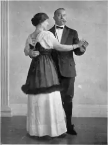 Le personnage principal du couple est la dame qui doit être placée devant l'homme, posée légèrement décalée sur le côté, ce qui crée un effet de glissement[3]. La danse se danse sur de la musique en ![]()
