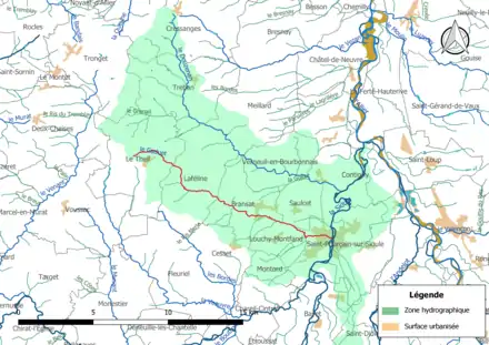 | Sources : SANDRE:« Fiche cours d'eau (K3384600) », Géoportail | |