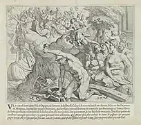 De ce travail colossal, il ne nous est parvenu que des gravures[7] et dessins préparatoires de Primatice ou Niccolo' dell'Abate.