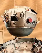- l'antenne grand gain lancée en position repliée qui surmonte un pare-soleil circulaire ;