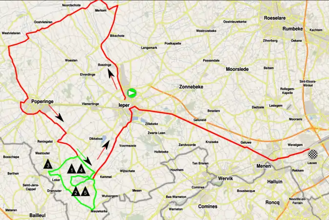 Note : Ieper est le nom néerlandais d'Ypres et Roeselare celui de Roulers- Parcours principal