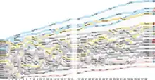 Des indications peuvent être affichées dans la partie épaisse des courbes aux endroits les plus horizontaux et différentes couleurs peuvent être utilisées pour distinguer les courbes entre elles.
