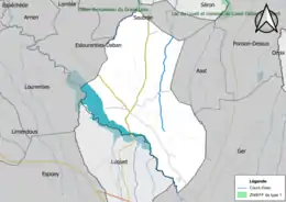 La commune est dans le bassin de l'Adour, au sein du bassin hydrographique Adour-Garonne[6]. Elle est drainée par le Gabas, le Léez, le Louet, le Carbouère et le ruisseau de Trou, constituant un réseau hydrographique de 9 km de longueur totale[7],[Carte 1].