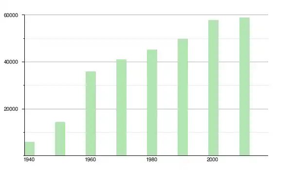 | 1960 | 35 943 | ▲ +149,52 % | |