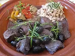 Gardiane, riz de Camargue, et ratatouille. | |