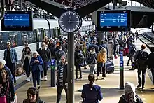 La gare dispose d'un hall principal d'accueil, où sont installés d'espaces d'information, de vente de billets, des casiers à bagages, des toilettes payantes, d'un office de tourisme et d'un bureau des objets trouvés. Elle abrite aussi des espaces commerciaux. On y trouve un supermarché, un bureau de poste, une banque, des bureaux de change ainsi que des restaurants, cafés et kiosques vendant nourriture, journaux, rafraichissements et friandises[1].