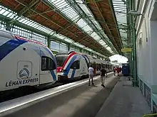 - des trains TER Auvergne-Rhône-Alpes sur la relation Bellegarde ↔ Évian-les-Bains via Annemasse et Thonon-les-Bains.