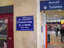 La gare d'Angoulême, ou gare du PO, d'où son nom, gare d'Orléans, a été construite incorporant une partie de l'ancien Collège royal de la Marine et inaugurée officiellement le 10 octobre 1852 par Napoléon III[4]. La gare de la Compagnie des Charentes qui deviendra gare de l'État, est construite de l'autre côté de l'avenue Gambetta. Cette gare hébergeait initialement le trafic entre Saintes, Angoulême et Limoges, dont la ligne a été inaugurée en 1875 (un deuxième tunnel sous la ville a dû être creusé, aujourd'hui tunnel routier)[5]. Ce bâtiment modeste, qui devait avoir un étage qui n'a jamais été construit a été détruit par un bombardement durant la Seconde Guerre mondiale.