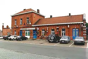 Construit par le Grand Central belge, le bâtiment de la gare, datant de 1878, est listé au patrimoine architectural de Flandre[3]. Il identique à celui de la gare de Lommel (démoli dans les années 1970) et de la même famille que les gares, plus grandes, de Neerpelt (classé comme monument), Mol (démolie) et Geel.