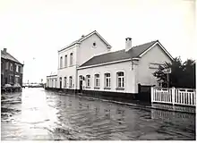 Construite comme de nombreuses lignes à cette période par des sociétés privées pour les Chemins de fer de l’État Belge, elle reçoit, comme les autres gares de cette ligne, un bâtiment de gare de plan type 1873 qui comporte une aile de cinq travées disposée à droite du corps central[3]. Le bâtiment de gare existe toujours et a été repeint en rouge avec du blanc pour les pilastres, les encadrements et le soubassement.