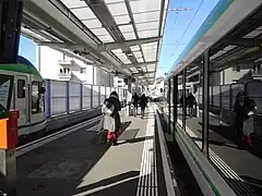 Point d'arrêt non géré, elle dispose de bancs abrités sous le toit du quai ainsi qu'un distributeur de billets, un interphone d'urgence et un oblitérateur pour les cartes multicourses sont présents. On y trouve également un ascenseur et deux escaliers qui donnent accès au quai qui sert les deux voies. La station est protégée par vidéosurveillance.