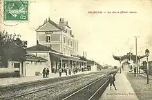 En 1855, elle est dotée d'un bâtiment voyageurs à deux étages en moellons et en pierre[1] et d'un buffet dans un bâtiment distinct. Le rez-de-chaussée abrite les guichets et, à sa droite, trois salles d'attente séparées par des cloisons basses en bois pour les voyageurs de 1re, 2e et 3e classe possédant chacune leur propre accès au quai attenant. La partie de gauche est occupée par le bureau et le local des bagages, le bureau et la lampisterie. Le premier étage sert de logement au chef de gare et le second au receveur ; les combles étant dévolus au facteur et au sous-facteur[2].