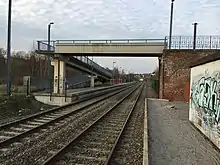À la fin du XIXe siècle, une passerelle piétonne surplombant les voies est établie. Une version moderne et raccourcie de celle-ci existe toujours en 2015. Dans les années 1930, un château d'eau permettant l'alimentation des motrices à vapeur est construit[11]. Il est démonté en mai 1992[16].