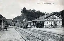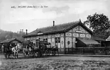 Bâtiment voyageurs et entrée de la gare vers 1910. | ||||