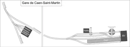 La ligne est fermée le et la gare de Caen-Saint-Martin est alors fermée. Dans les années 1960, des immeubles sont construits à l'emplacement des anciennes voies déposées. L'ancien bâtiment voyageurs est actuellement occupé par la Circonscription d'action sociale de Caen-Centre[9].