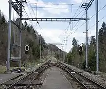Elle dispose d'un faisceau d'aiguilles composé de quatre aiguillages talonnables qui permettent aux trains de rebrousser chemin sans avoir recours à des moteurs pour tourner les aiguilles. On peut ainsi renoncer à la construction d'un poste d'aiguillage, même commandé à distance. Ce sont de nos jours les seules aiguilles talonnables du réseau CJ. Une cinquième aiguille, manuelle, relie les deux voies à l'opposé des voies d'entrée et de sortie. Elle permet de « retourner » les locomotives des trains de marchandises, (manœuvre consistant à placer le véhicule moteur à l'autre extrémité du convoi).