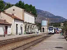 Construite par l'État, elle est mise en service en 1888 par la Compagnie de chemins de fer départementaux (CFD). C'est une gare des Chemins de fer de la Corse (CFC), desservie par des trains « grande ligne ».