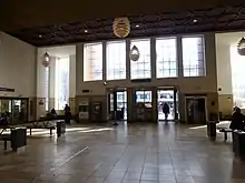 La gare dispose d'un hall principal d'accueil, où sont installés d'espaces d'information, de vente de billets, des casiers à bagages, des toilettes payantes, et d'un kiosque vendant nourriture, journaux, rafraichissements et friandises. Il y a également des machines en libre-service et des distributeurs de billets[1].