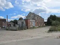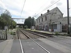 Voies, quais, abri, passage à niveau et l'ancien bâtiment à l'abandon. | |