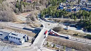Un parking pour les véhicules et un parc à vélo y sont aménagés[1]. Elle est desservie par les bus des lignes 77 (Holmlia – Bjørndal), 79 (Holmlia – Grorud T) et 80 (Holmlia - Grensestien).