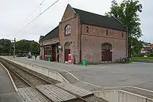La gare est reconstruite à partir de 1908, en briques, selon les plans de l'architecte Henrik Bull[1].
