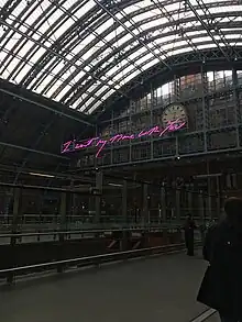 - Le nom de cette gare est parfois écrit avec ou sans apostrophe : King's Cross (avec une apostrophe) est la désignation officielle dans la gare et la station de métro. C'est cette orthographe qui apparaît sur les plans du métro de Londres et le site web officiel des transports ferroviaires Network Rail[1]; mais Kings Cross (sans apostrophe) est la forme qui apparaît dans les dépliants donnant les horaires ainsi que sur les sites des autres compagnies ferroviaires. On trouve également l'orthographe sans apostrophe Kings Cross pour faire référence au quartier environnant la gare.