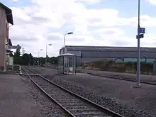 Un passage à niveau planchéié permet la traversée d'une voie et l'accès au deuxième quai en position centrale.