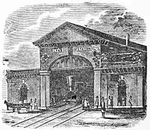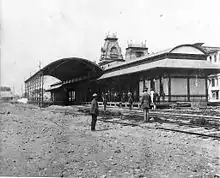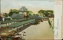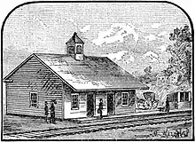 Après une affaire qui a atteint la Cour suprême en 1871 et un appel subséquent devant la Cour des États-Unis, une décision a finalement été prise pour construire des gares aux deux endroits[10]. Les gares Central Square et Market Street étaient en service au milieu de 1872, mais il était intenable pour le chemin de fer de desservir deux gares distantes de quelques centaines de mètres l'une de l'autre. La gare de Market Street a été démolie en 1873 et remplacée par un abri en bois qui ne desservait qu'une poignée de trains.