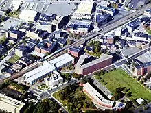 Lynn a également accueilli huit autres stations sur différents sites - dont aucune n'a duré jusqu'à l'ère MBTA - plus une neuvième qui a ouvert ses portes en 1965. Outre ses arrêts du centre-ville, le chemin de fer Eastern a également servi East Lynn de 1880 jusqu'à ce que le service de Marblehead Branch se termine le 14 juin 1959[31]. Des escaliers entre la rue Chatham et le site de la gare existent toujours, bien qu'aucun bâtiment de gare ne subsiste[32]. Le dépôt de 1896 a été démonté en 1912 en vue de la séparation de niveau du centre-ville. Il a été déplacé à Durham, New Hampshire, où il sert maintenant de bar laitier de l'Université du New Hampshire et d'un arrêt de station sur le service Downeaster d'Amtrak. Une station West Lynn était située sur la rue Commercial, à la jonction avec le chemin de fer Saugus Branch, et la rue Green était brièvement située juste à l'est de Central Square[33],[34]. Ni les bâtiments de West Lynn ni de Green Street ne survivent.