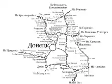 Le réseau de Donetsk, Макeeвка sur la droite.