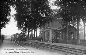 En 1906, on y installe une grue de chargement et la halle à marchandises est rallongée[5]. En 1911, la gare de Mars figure dans la nomenclature des gares stations et haltes du PLM[6] comme gare de passage de la ligne de Moret-les-Sablons à Nîmes, entre la gare de Saincaize et la Gare de Saint-Pierre-le-Moûtier[7]. C'est une gare ouverte aux services complets de la grande vitesse (GV) et de la petite vitesse (PV)[8]. En 1912, le Conseil général émet un vœu pour que le chemin menant de la route nationale à la gare soit élargi et empierré car la circulation y est difficile du fait des camions et automobiles qui viennent prendre des marchandises en gare[9].