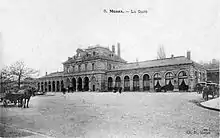 Il s'agit d'un bâtiment symétrique de style néo-classique constitué d'un corps central à toiture mansardée (au milieu de laquelle se trouve l’horloge de la gare) dont les cinq travées du deuxième étage surplombent cinq arcades parmi lesquelles deux sont aveugles. De part et d'autre de ce corps central se trouvent deux ailes basses, à toiture à deux croupes, munies de huit travées à arc en plein cintre qui répondent aux arcades du corps central.