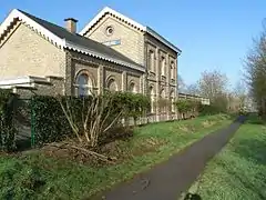 Ancien bâtiment, vu depuis le RAVeL, en 20. | |