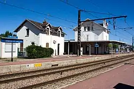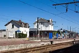 Le bâtiment voyageurs et l'entrée de la gare en 2017. | |