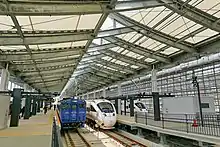 La gare de Nagasaki marque la fin des lignes Shinkansen Nishi Kyūshū et Nagasaki.