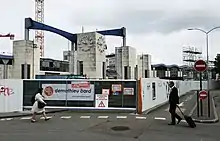 Le , la SNCF désigne l'architecte Varois Rudy Ricciotti pour mener à bien le projet[28], dont les premières images ont été dévoilées à la presse le jour même[29]. Le bâtiment se présentant sous le forme d'une passerelle-mezzanine vitrée, posée à une dizaine de mètres au-dessus des voies, sera large de 25 mètres pour une longueur de 160, accueillera également 1 500 m2 de commerces et de services. La pose de la première pierre a été effectuée le [30].
