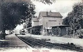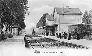 En 1881, le conseil général demande, dans un vœu, que le nom de la gare devienne Gare de Nemours-Saint-Pierre-lès-Nemours[9],[alpha 1].