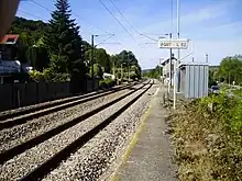 Vue en direction de Mantes-la-Jolie / Paris depuis l'ex-quai pour Vernon - Giverny. | |