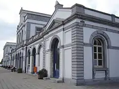 La façade côté ville et l'entrée de la gare en 2009. | |