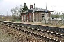Ancien bâtiment voyageurs et entrée de la halte. | ||||