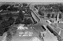 La gare de St. Marys Junction est mise en service en 1858 par la compagnie du Grand Tronc à un kilomètre et demi au nord-est du village. Son éloignement du centre incite les habitants à faire pression sur la compagnie, notamment en essayant de faire venir une compagnie concurrente, pour un déplacement de la gare. Le Grand Tronc finit par répondre favorablement aux sollicitations en ouvrant, en 1879, une petite gare dénommée « Switch » plus proche du centre, au croisement des rues Elizabeth et King, mais elle ne satisfait pas encore les habitants[3].